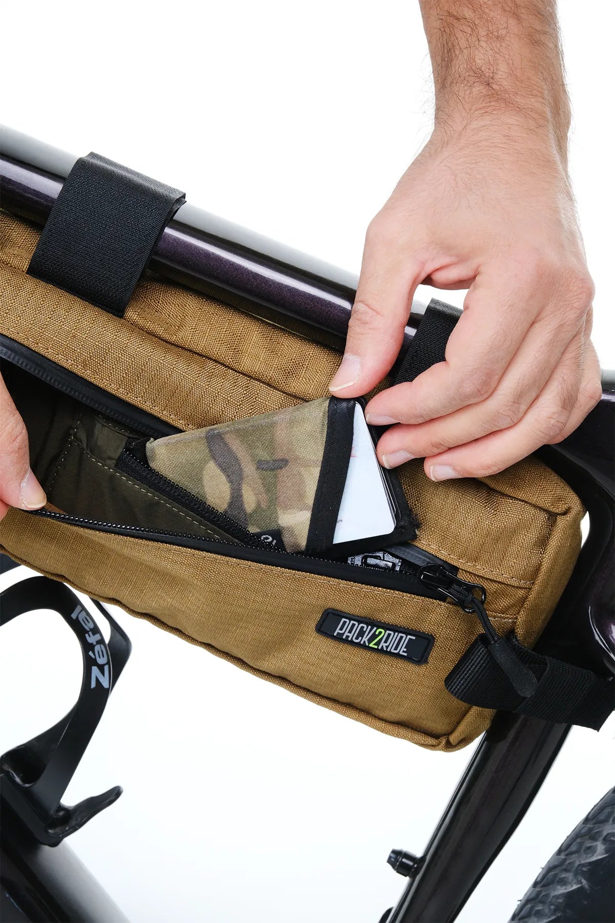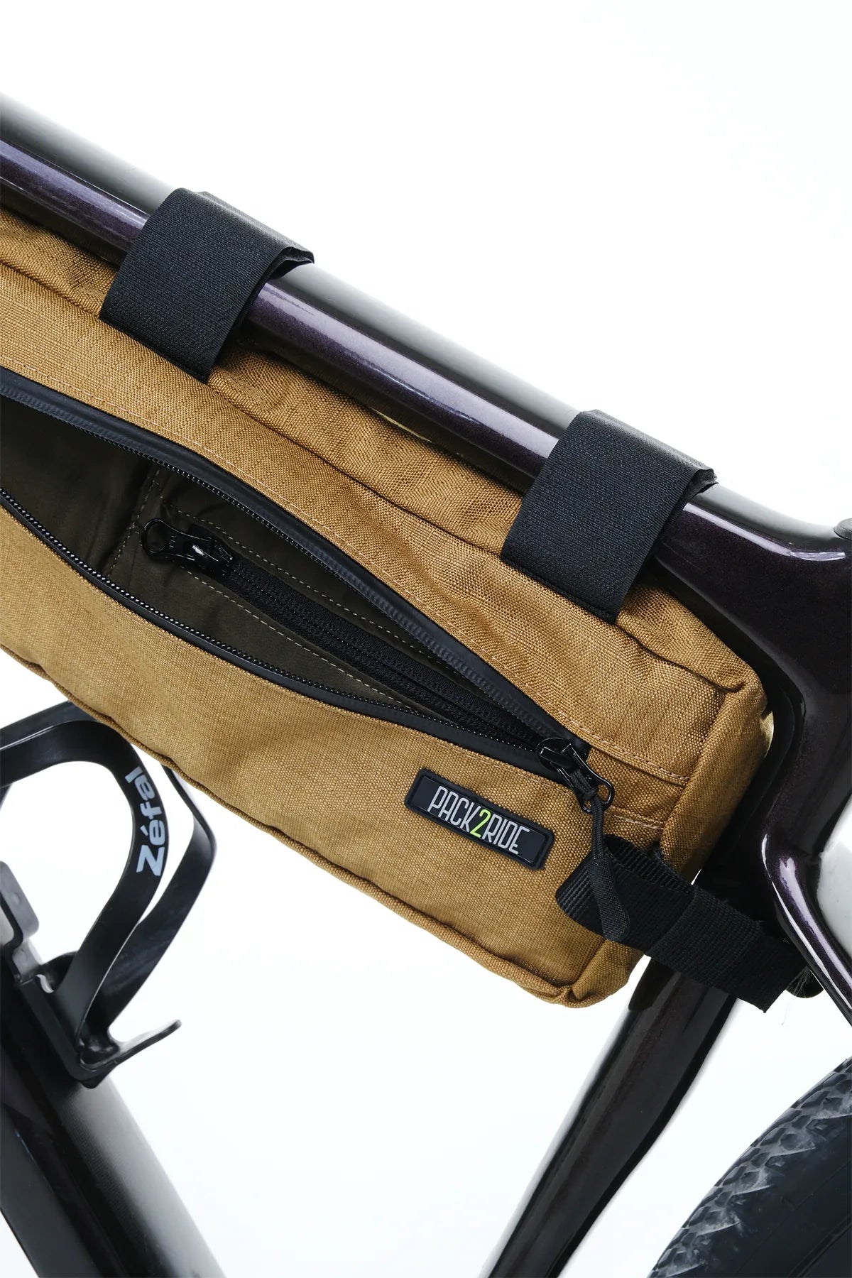 • Water Resistant. Produced with long-lasting YKK AquaGuard® zipper with water-repellent coating and Cordura® 1000D fabric which is waterproof and resistant to harsh conditions. Zips are covered for extra protection. Enjoy your Pack2Ride frame bag for life.